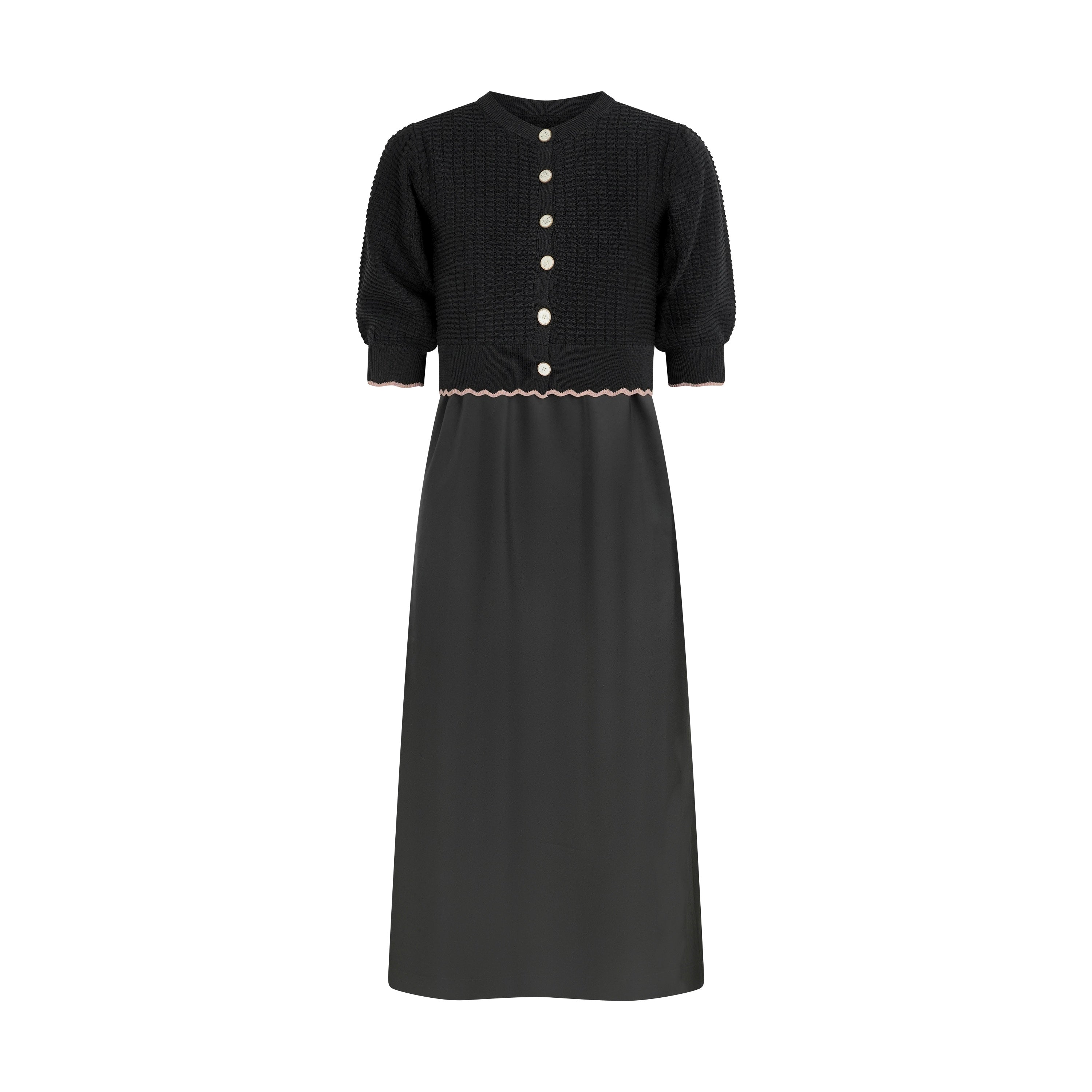 A beautiful two-piece teen maxi set featuring a silky sleeveless underlay layered beneath a stunning pointelle knit cardigan. Delicate scalloped contrast trim graces the hem, while pretty mother-of-pearl buttons add a refined touch. The knit puff sleeves are finished with soft scalloped edges, enhancing the overall elegance. Available in a gorgeous mauve or a classic black.