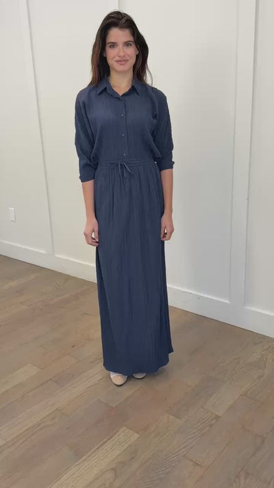 The Crinkle Set is an effortlessly chic two-piece designed for warm days and easy living. Made from a textured, airy fabric with a light, summery feel, it drapes beautifully while keeping things breathable and comfortable. The oversized dolman blouse has a relaxed, flowy shape with three-quarter sleeves finished with soft elastic cuffs, while the straight skirt features an adjustable drawstring waist for an easy, flattering fit that works beautifully for a range of body types. Worn together or styled separately, this set feels relaxed yet refined and endlessly wearable. Perfect for everyday wear, it looks especially lovely paired with light shoes for a soft, polished finish.