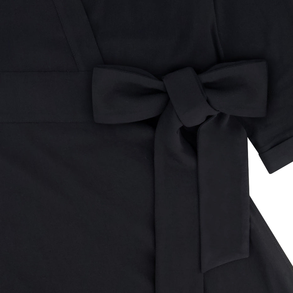 The deep wrap silhouette creates a beautifully flattering shape that hugs in all the right places while elongating the body. For added comfort and confidence, we included an optional snap to keep the wrap secure — a small detail that makes a big difference. The loose, cuffed 3/4 sleeves add softness and balance, giving the dress an elegant, unfussy feel.