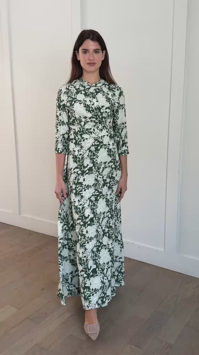 This wrap maxi features an absolutely gorgeous, designer print with a refined palette of greens and neutrals that feels elevated, timeless, and quietly luxe. It’s the kind of print that looks special without feeling loud — sophisticated, feminine, and beautifully balanced.